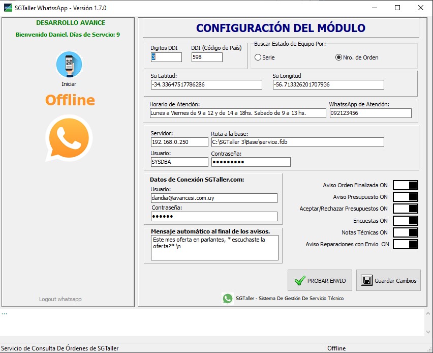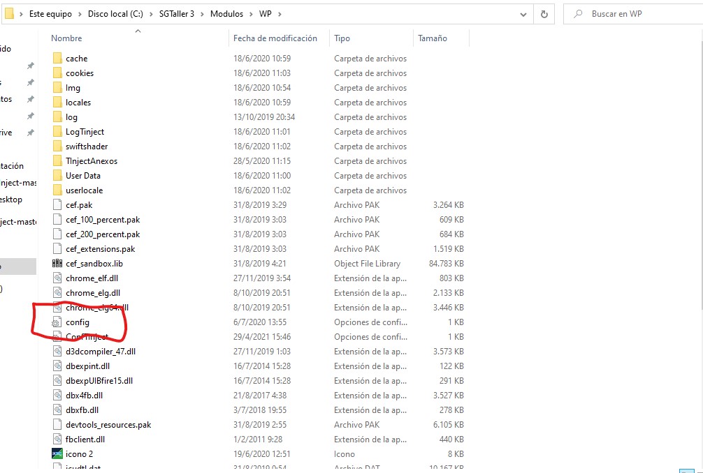 - Ir a la carpeta C:\SGTaller 3\Modulos\WP y abrir el archivo config.ini