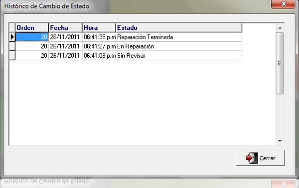 HISTÓRICO DE CAMBIOS DE ESTADO PARA LAS REPARACIONES.