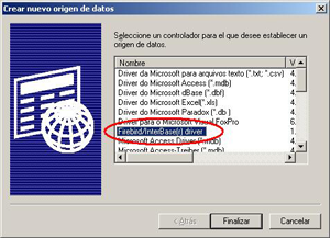 4- Seleccionamos el driver Firebird/Interbase(r) driver y hacemos clic en Finalizar
