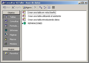 11- Aparece el icono en Tablas correspondiente a Reparaciones.