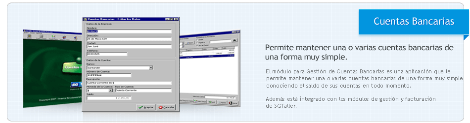 • Gestión de cheques en cartera: Podrá llevar el control de los cheques de terceros que tenga en cartera sin límite de cuentas o movimiento. • Emisión de cheques: podrá llevar un control de los cheques que va emitiendo. |