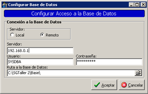La base de datos de SGTaller se encuentra por defecto en C:\SGTaller 2\Base\Service.fdb